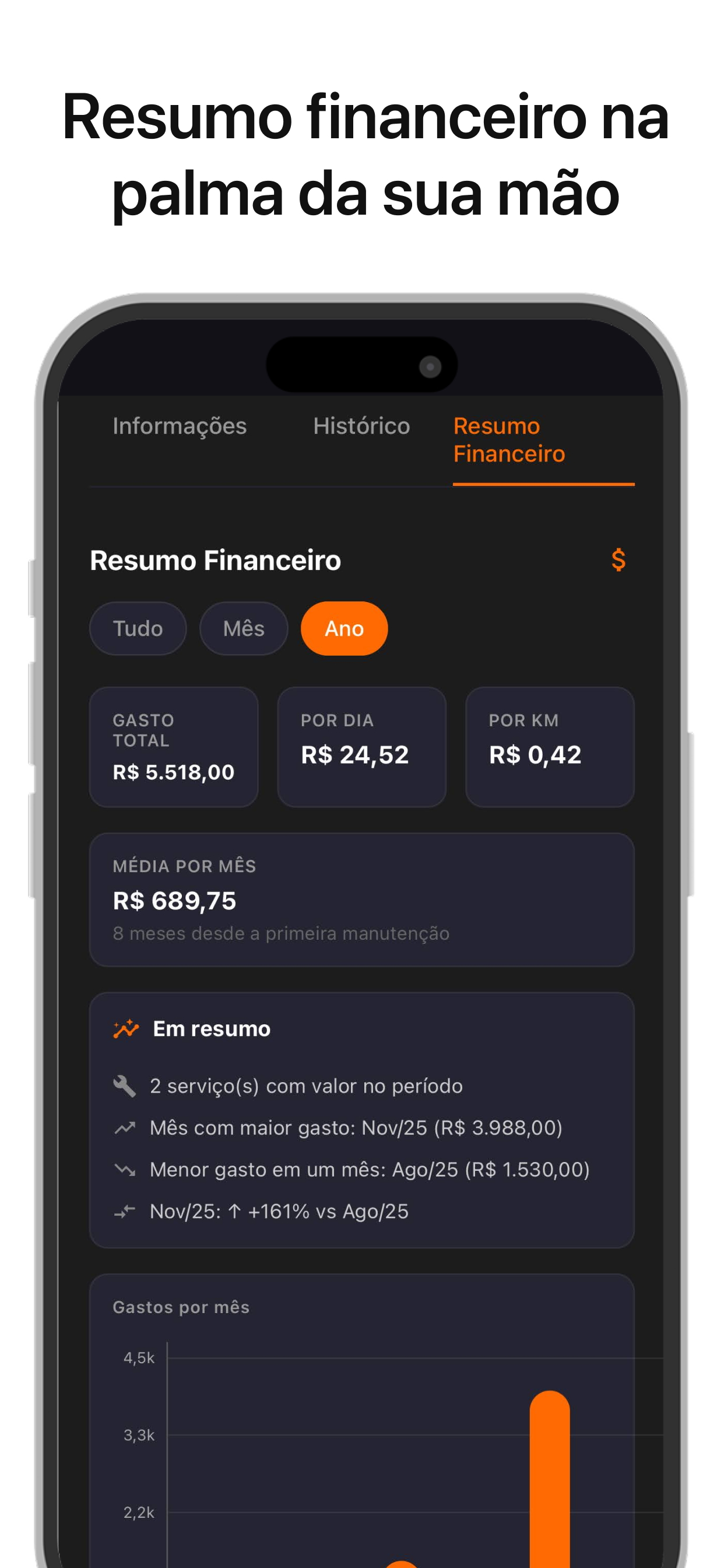 Saiba exatamente quanto você investe no seu carro ao longo do tempo.